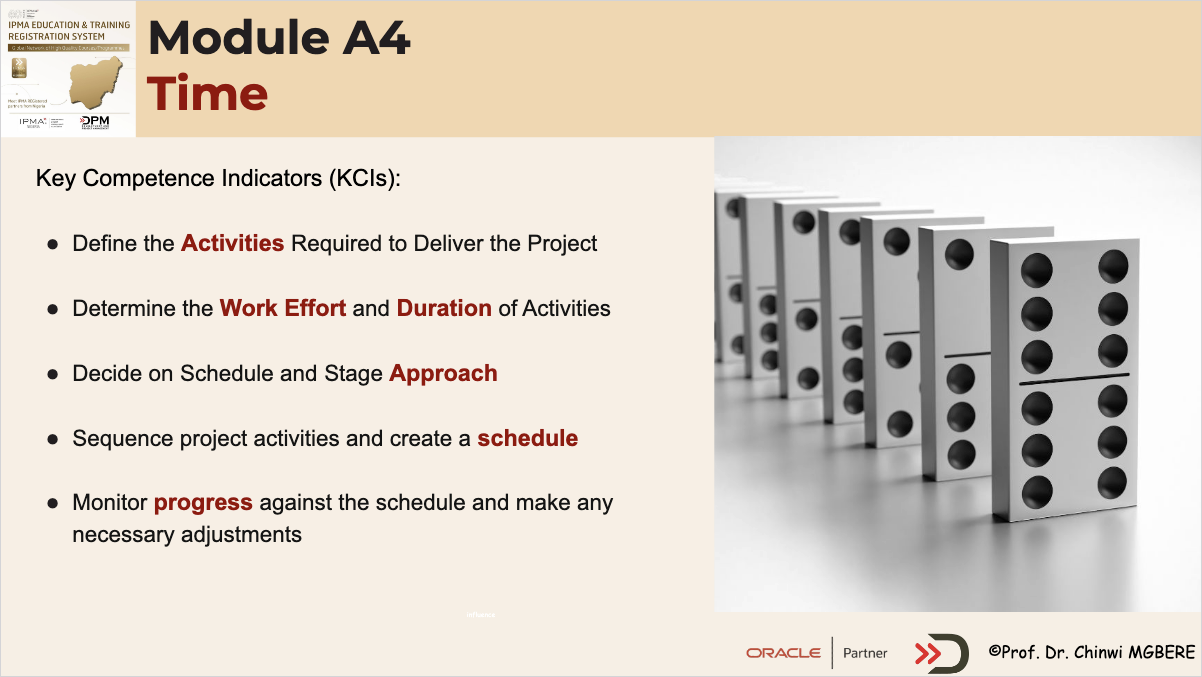 This competence enables individuals to define, sequence, optimise, monitor, and control all components needed to achieve agreed outcomes.